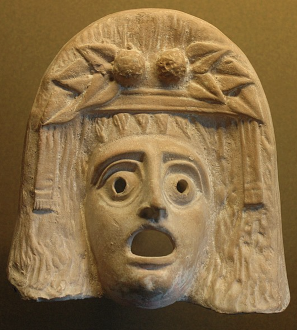 Греческая театральная маска — ключевой узел в истории маски: здесь сакральный «лик» из дионисийского культа превращается в публичный язык полиса. Театр вырастает из праздников Диониса, и маска остаётся посредником: актёр (hypokrites) не «играет себя», а даёт голос богам, мифу и общине. Маска снимает частное лицо и делает персонажа типом, а хоровая маска объединяет людей в единый коллективный голос.