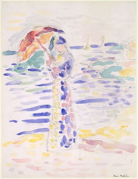 Интересно, как разнятся некоторые полотна, привезенные обоими художниками из поездки обратно в Париж. Матиссу 35 лет, у него своя студия в Париже, и в Коллиуре он рисует множество акварельных набросков, которые затем привезет в мастерскую и будет работать по ним над полноценными полотнами.