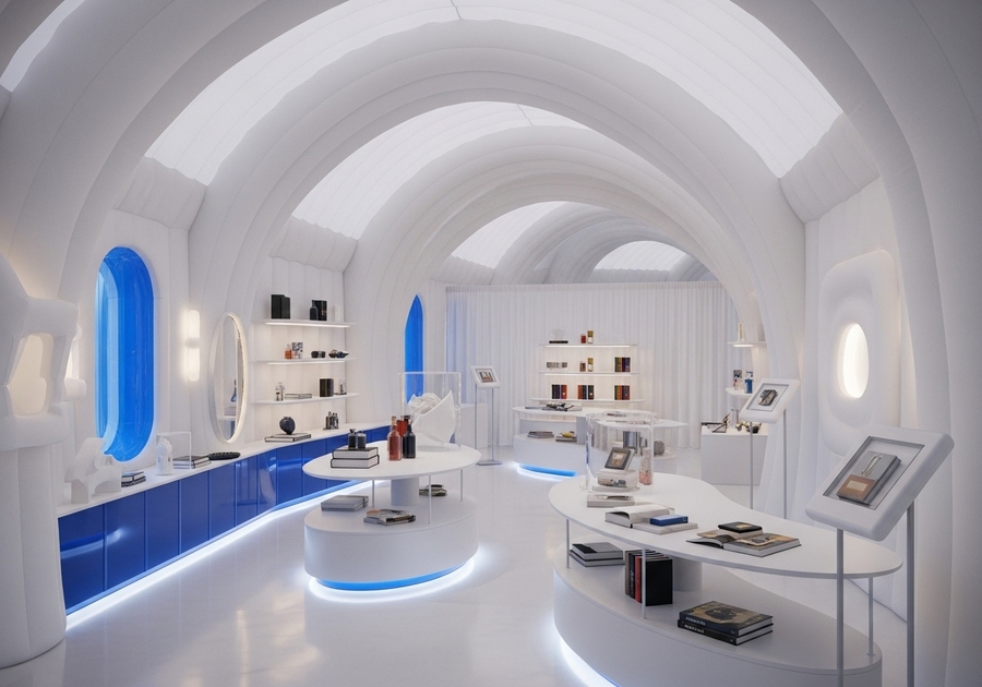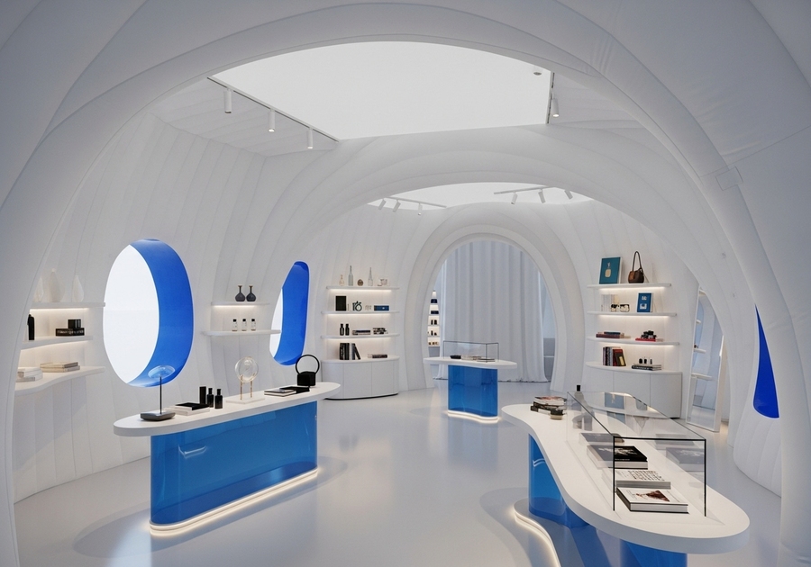 В качестве нового проекта я хотела разработать pop up store, посвященный выставке. Так как в моем основном проекте ключевым объектом был тканевый воздушный пол, я решила внедрить данный принцип в дизайне магазина. Новая работа выполнена в стилистике и и цветовой гамме старого проекта