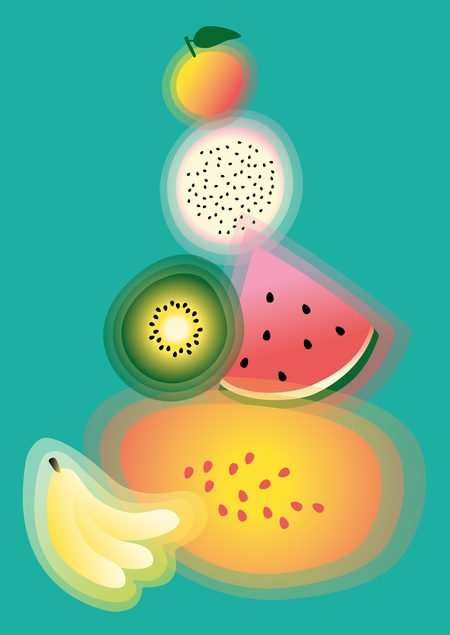 Вторая концепция вдохновлена техникой декорирования jacarelado. Здесь разные фрукты, собираясь вместе, создают сбалансированный продукт.