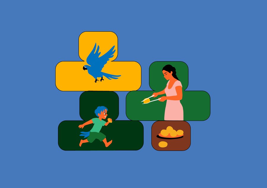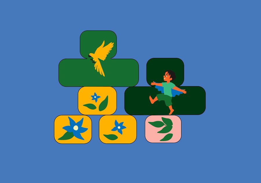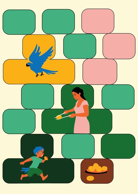 Серия детских деревянных мозаик, которые последовательно рассказывают легенду бренда Мирабейра