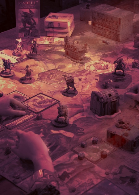 Визуальный стиль проекта и графиков был вдохновлен настолько долгими встречами с друзьями для игры в настольные игры, что стол с игровым полем озаряется лучами закатного солнца.