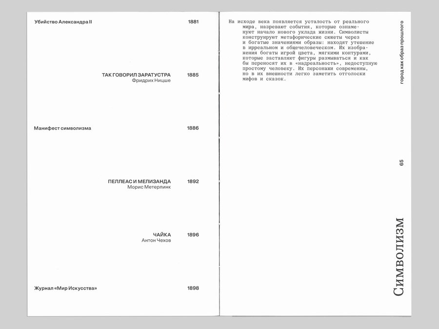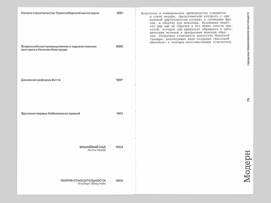 В начале каждой части располагается таймлайн исторических событий и выхода значимых произведений, соответствующих выбранному периоду.