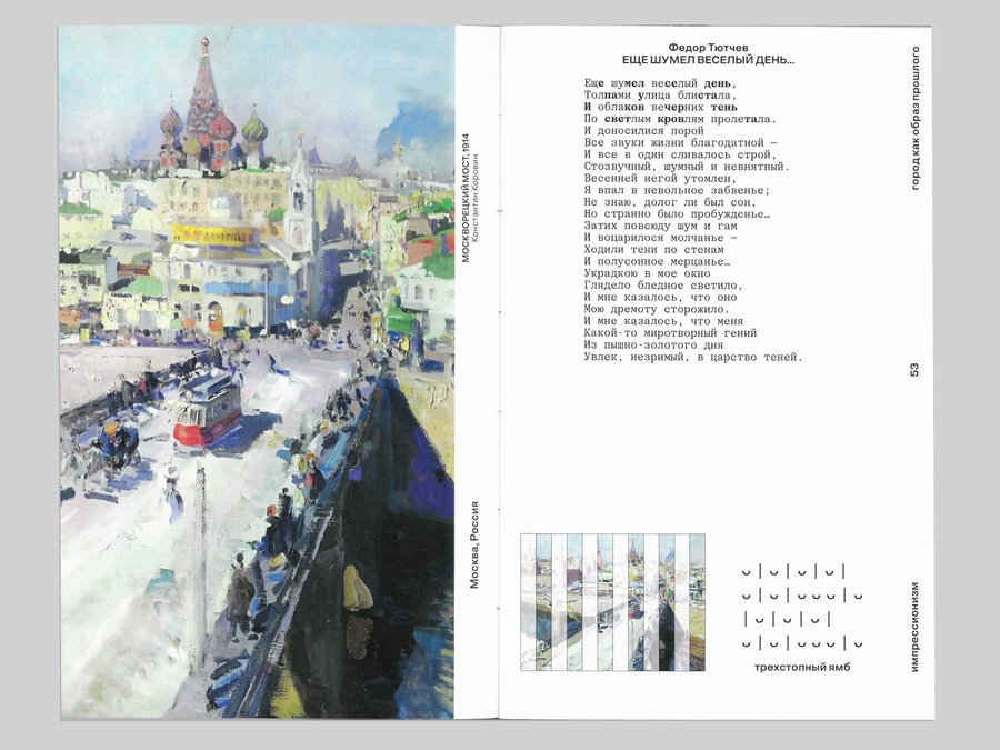 Что, если ритм стихотворных размеров можно переложить на визуальную организацию произведений искусства и через их сопоставление попытаться раскрыть уникальность места, его атмосферу? Проследить совпадения и изменения на протяжении различных направлений в искусстве, чтобы заметить как трансформируется облик города и его восприятие художниками?