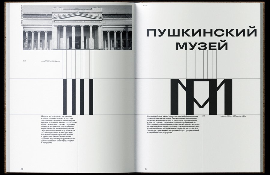 В данном визуальном исследовании автор стремится понять, как именно строится графический язык культурных институций на основе образа здания и каким образом объём превращается в плоскость. Это исследование становится полем пересечения трёхмерного и двухмерного пространств, где иллюстрируется взаимосвязь архитектуры и айдентики.