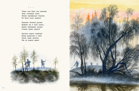Посмотрев на иллюстрации Николая Устинова к книге «Листопад: стихи русских поэтов», можно заметить общие признаки, которые художник использует для передачи настроения произведений.