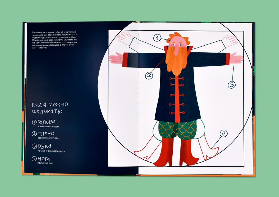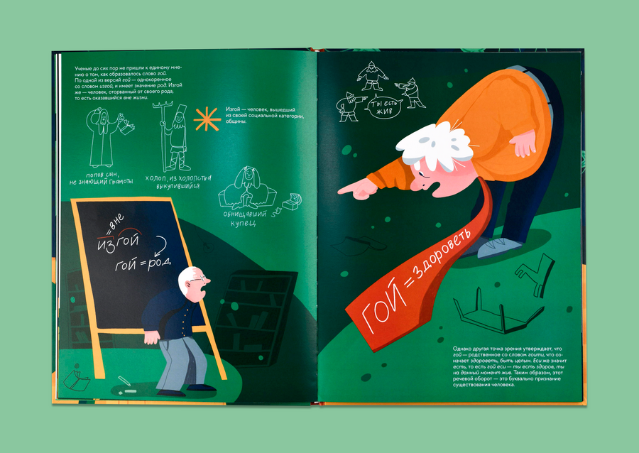 Иллюстрации дополнены рукописными подписями и прямой речью, что позволяет создать дополнительный нарратив внутри изображений. В сносках представлена информация, расширяющая контекст основного текста.