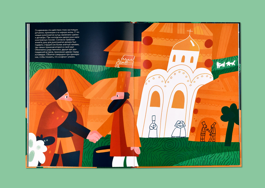 В дополнение к обложке была создана суперобложка с прорезями в виде окон. Этот элемент поддерживает идею приветствия, позволяя читателю лично встретить героев книги.