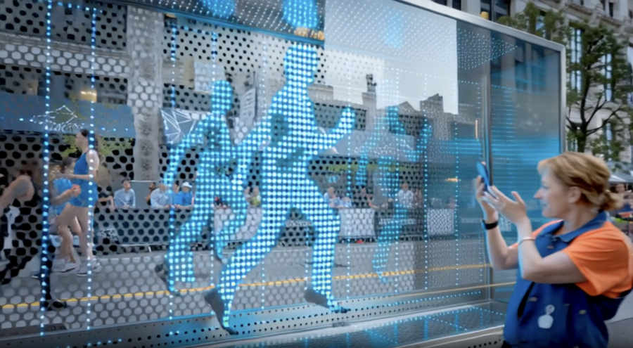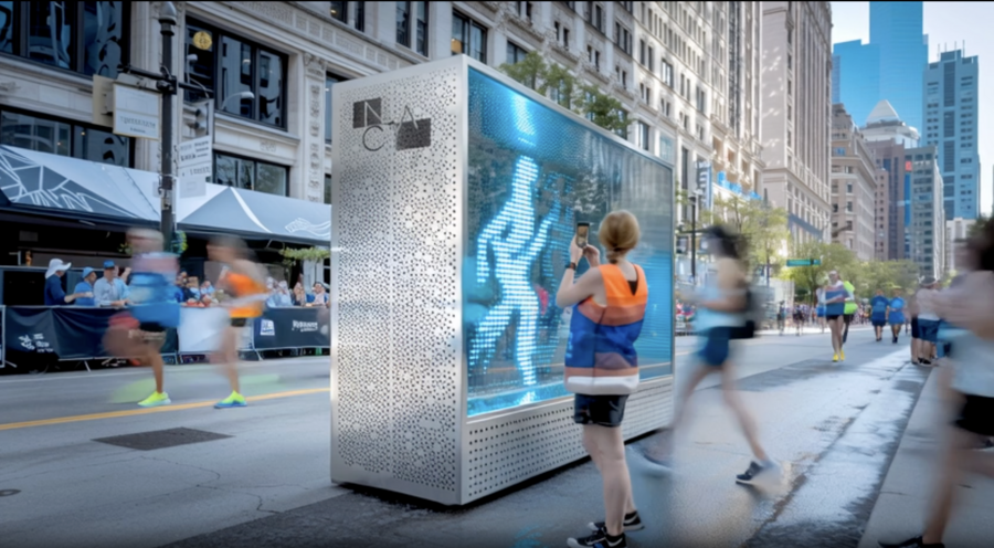 Другая сторона конструкции — это бокс для размещения арт-инсталляций на спортивную тематику; работы могут визуально привлечь людей в спортивную сферу и напоминать о важности сбалансированного образа жизни