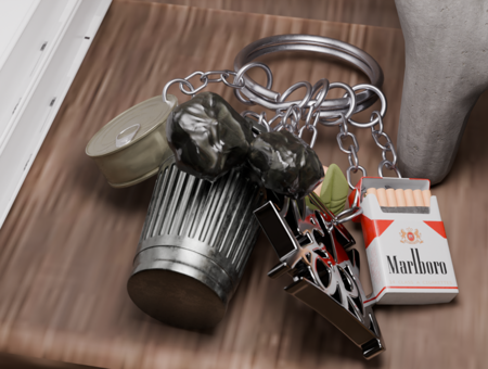 Обвес состоит из разных брелков «культурных кодов», элементов которые отражают советскую и американскую эстетику (мусорные баки Бруклина, пакеты с мусором, пачка сигарет, пельмень и граффити) и которые часто можно увидеть в визуальной среде Брайтон-Бич.