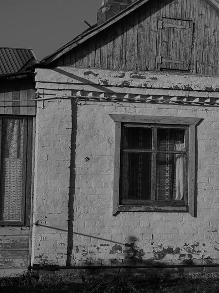 «Память» это проект о пространстве о на границе между существованием и разрушением — места, где ни одна из этих категорий не существует в чистом виде. Эти ландшафты не являются ни идиллическими, ни катастрофическими, они находятся в состоянии постоянного компромисса. Человек в этих пространствах присутствует опосредованно — через следы, инфраструктуру, вмешательства. Я намеренно избегаю событийности и драматургии, работая с нейтральным светом и дистанцией, позволяющей рассматривать происходящее как систему, а не как отдельный эпизод. Идя по своему обычному маршруту прогулки, изучаю старые хатки, которые хранят в себе историческую и личную память. Эти изображения не фиксируют трансформацию как процесс, но показывают состояние, когда дом практически не подлежит восстановлению, и несёт за собой память для хозяев.