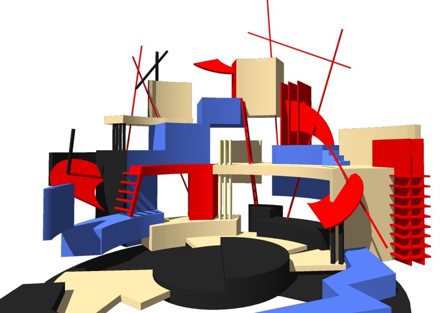 Концепция моего арт-объекта — распологающийся на открытом пространстве амфитеатр, вдохновленный творчеством А. Экстер, на котором смогут проводиться общественные мероприятия. Он станет точкой притяжения, местом, где жизнь будет протекать в реальном времени.
