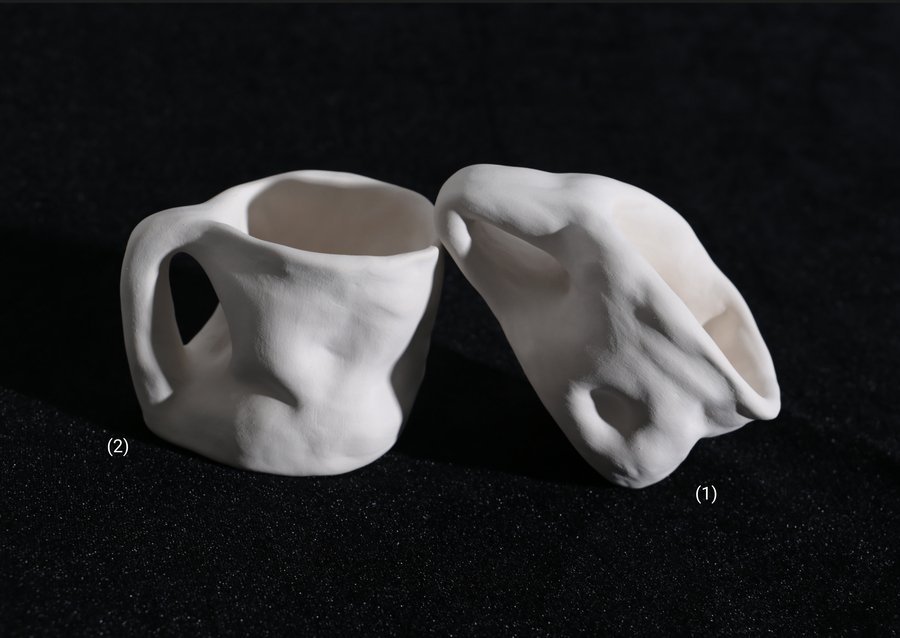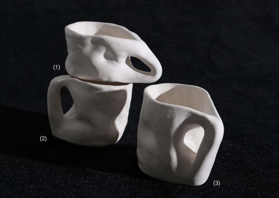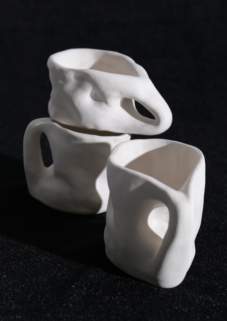 Ручка, которая не приделана, а как будто прощупана внутри массы, — это и есть главный жест: найти точку опоры не снаружи, а внутри самого комка, внутри сомнения. Странная форма изделий — отражение того самого внутреннего процесса, который не имеет чёткого конца, но требует воплощения. Чтобы его можно было обнять ладонями и понять, что преодоление — это не финишная черта, а сам путь, сделанный вещью.