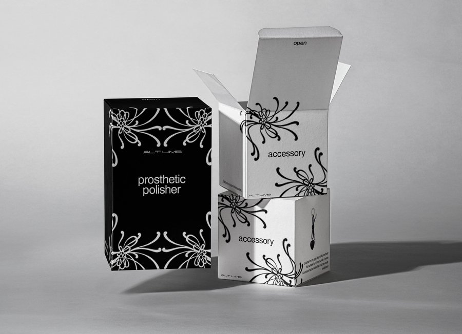 ALT LIMB — бренд, который занимается изготовлением и кастомизацией протезов на заказ. Миссией бренда является трансформация восприятия протезов из символа потери в символ силы, красоты и самовыражения. При этом ALT LIMB предоставлял персональный сервис по подбору протезов каждому клиенту, учитывая его потребности и вкусовые предпочтения. Основной метафорой стала графика, напоминающая гравировку, которую можно выполнить при кастомизации протеза.