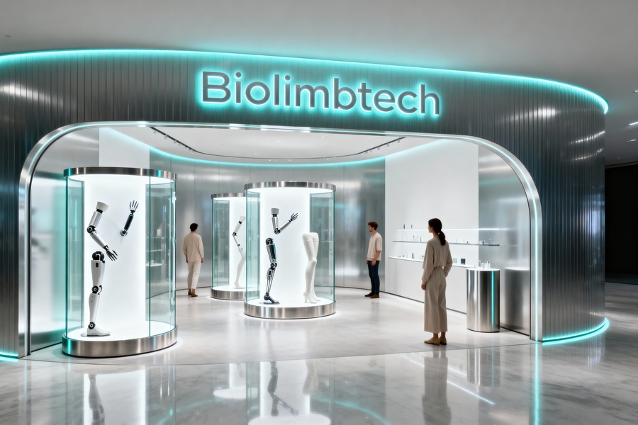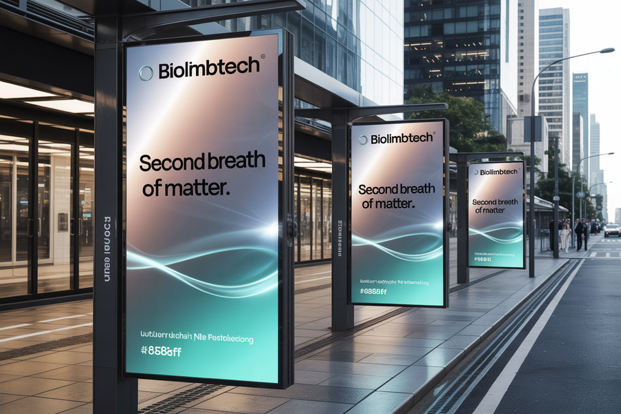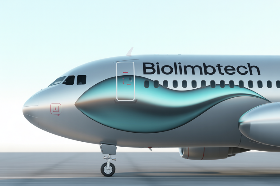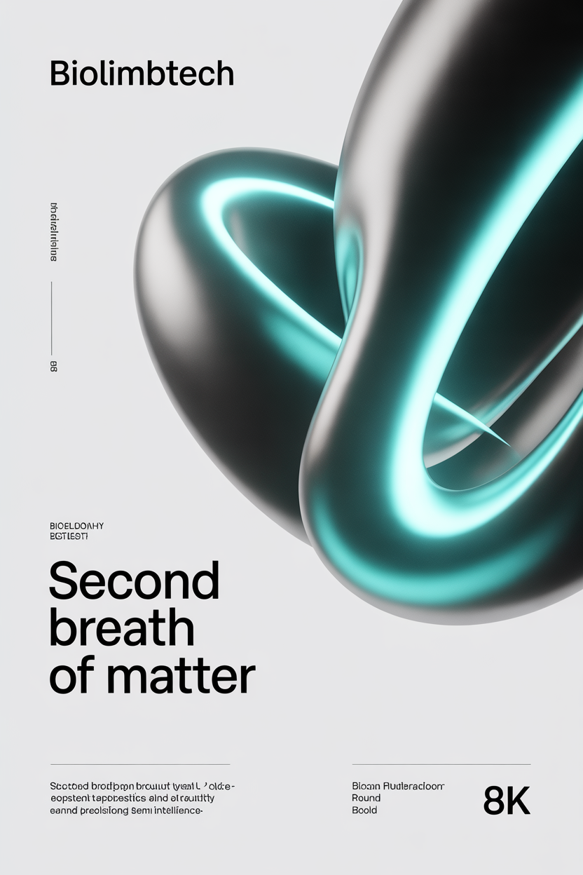 Minimalist logo design for a biotechnology company named «BioLimbTech». The logo should symbolize the fusion of human life and advanced technology — a sense of «second breath of matter». Design a smooth, organic geometric mark that feels alive, flowing, and intelligent. Use soft gradients of white, silver, and bioluminescent cyan (#38E8D6). Avoid sharp or mechanical shapes — focus on natural curvature, balance, and subtle motion. Typography should be clean, modern sans-serif with rounded geometry (e.g. Satoshi, Neue Haas Unica). No taglines, no extra symbols — just the emblem and the name «BioLimbTech». Professional, futuristic, yet empathetic and warm aesthetic. ultra high quality, vector graphic, branding, minimalist layout, centered composition, white background.