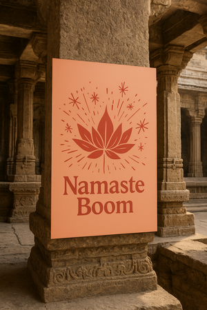 Начиная работать над проектом, я выделила для себя основную метафору бренда SAANVI — праздник, просветление, очищение. Индийский вайб, который чувствуется в визуальном оформлении всего проекта. На этой метафоре будет строиться айдентика. Далее я попросила чата gpt описать, каким он видит мой бренд, и подобрать варианты нейминга. Новое название, которое подсказала нейросеть — Namaste Boom.