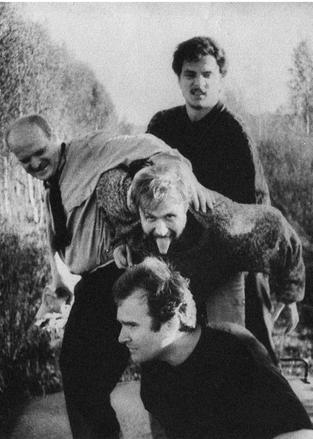 На обложке визуального исследования: фотография участников движения некрореализма во время съёмок фильма «Папа, умер Дед Мороз» (реж. Евгений Юфит, 1991).