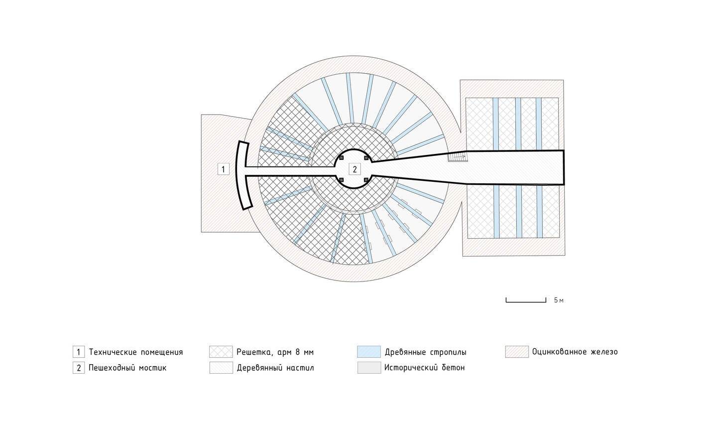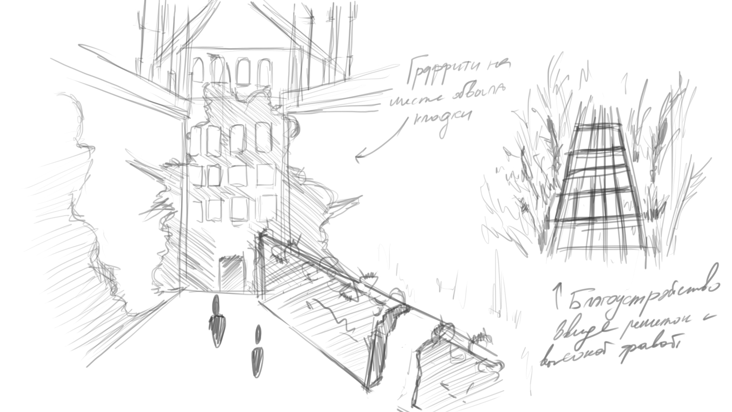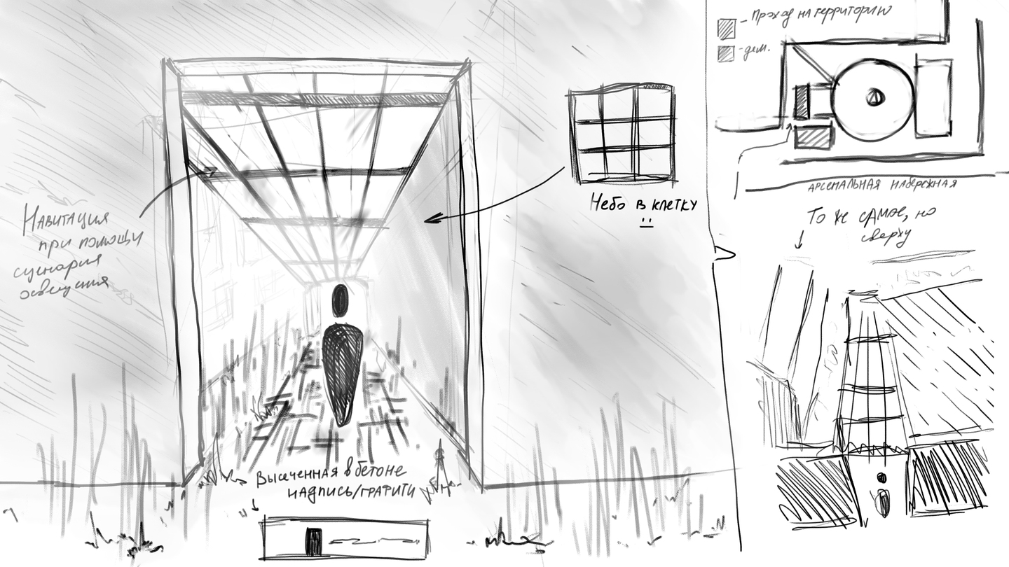Проект посвящен благоустройству части территории тюрьмы Кресты, а именно круглого прогулочного двора. В основе концепции лежит стремление переосмыслить форму строения, спроектированного по проекту паноптикума, отразив его эстетику, но с принципиально иным функциональным значением.