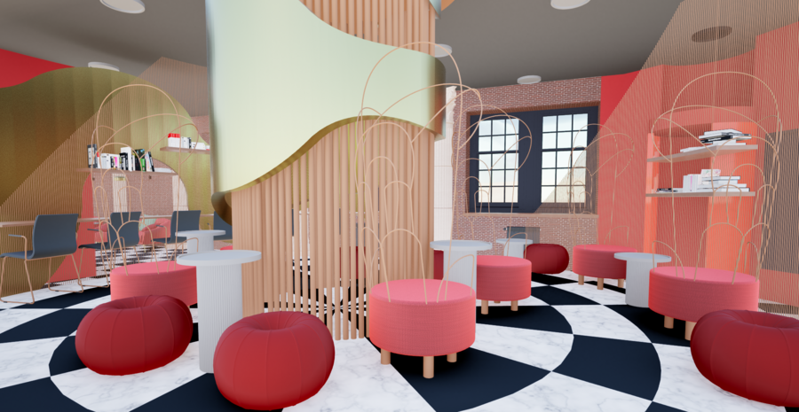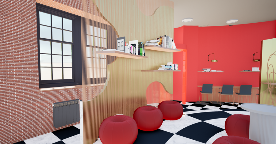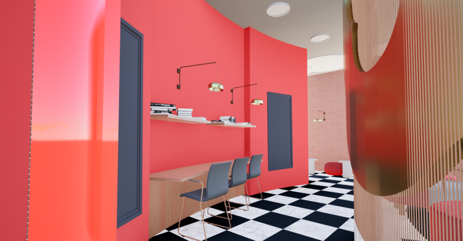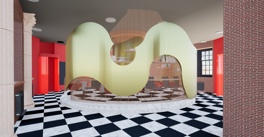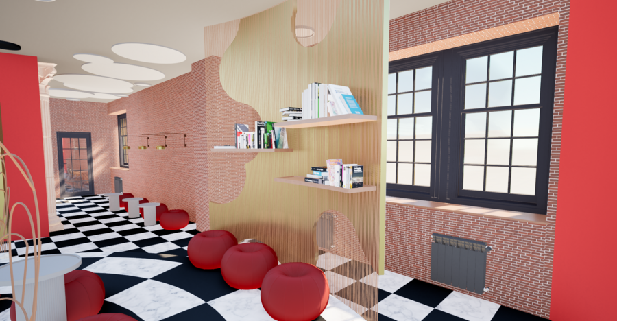 / общественное пространство включает зону для отдыха и чтения; коворкинг, где можно поработать со своим ноутбуком; зона для звонков;
