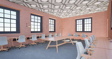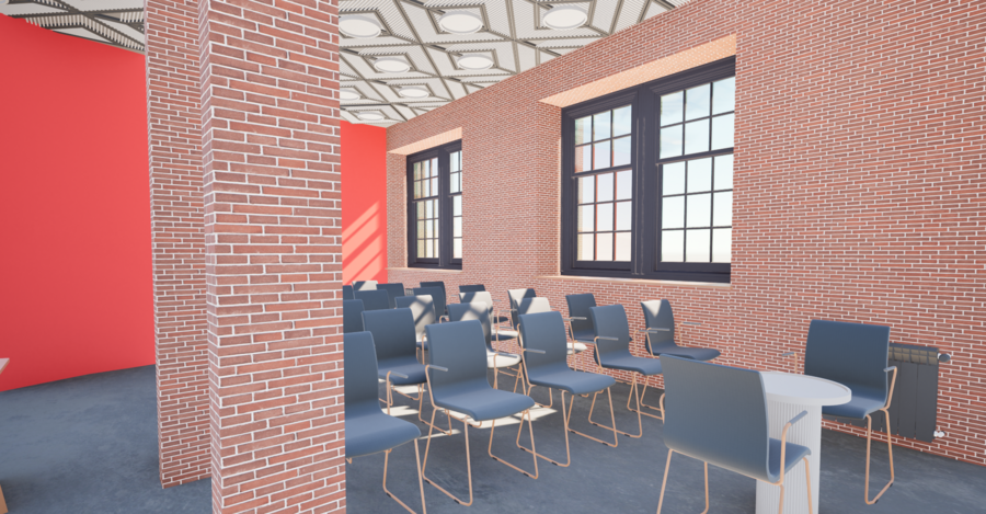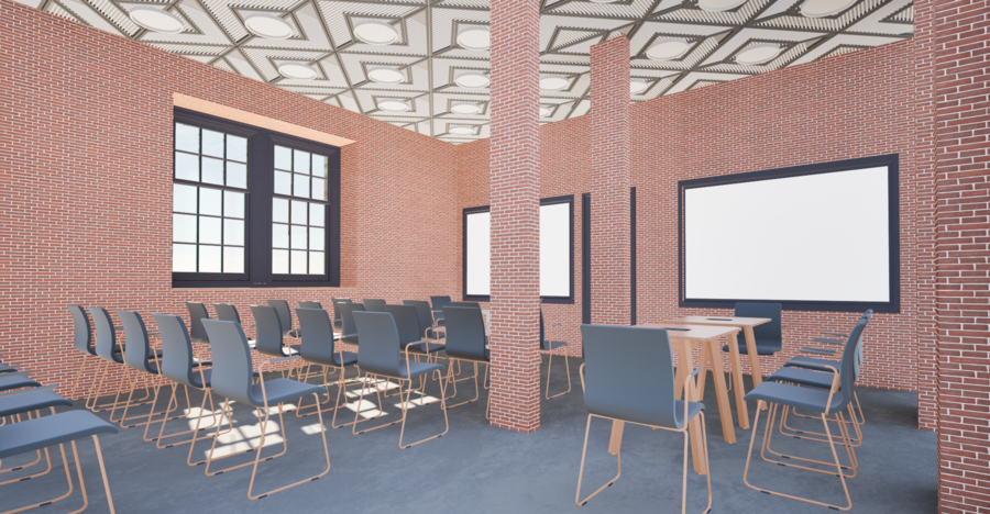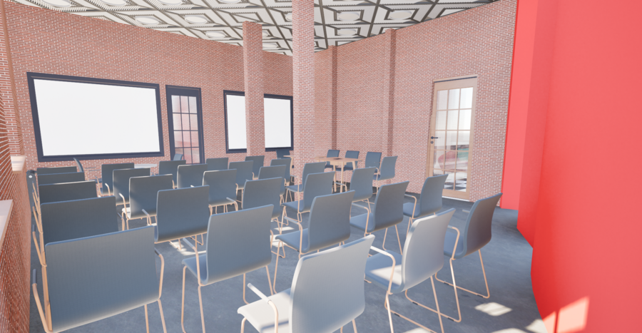 /лекторий - разделен на две части; - большая часть — простраснтво для лекций с экранами; - вторая часть — зона для консультаций;