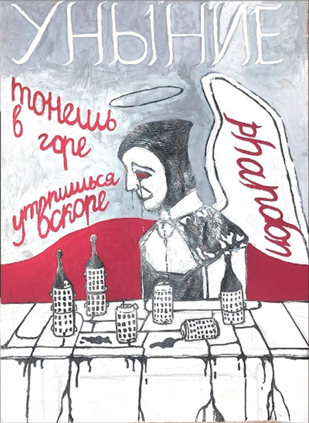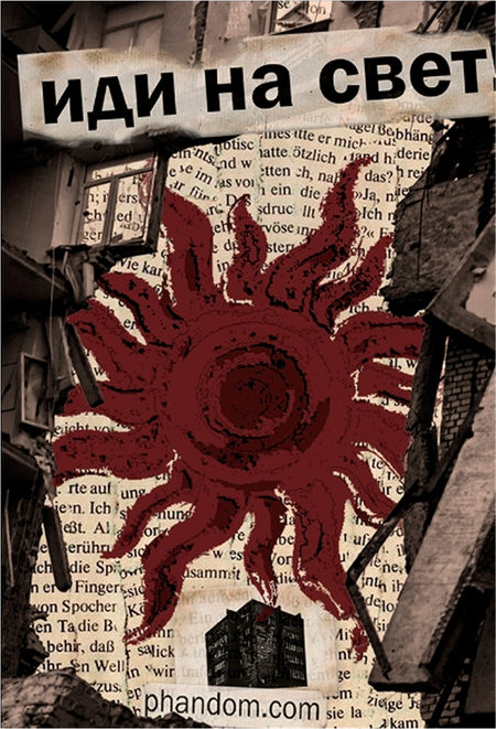 Stylisty of posters is based on three sacrilege images — the sun, the angel, and the Babylon Tower. They are constantly intertwined and represent the hope of a bright future. The other three images — the big eye, the blood (red), and the panel house — represent despair, fear, and inexhaustibility.