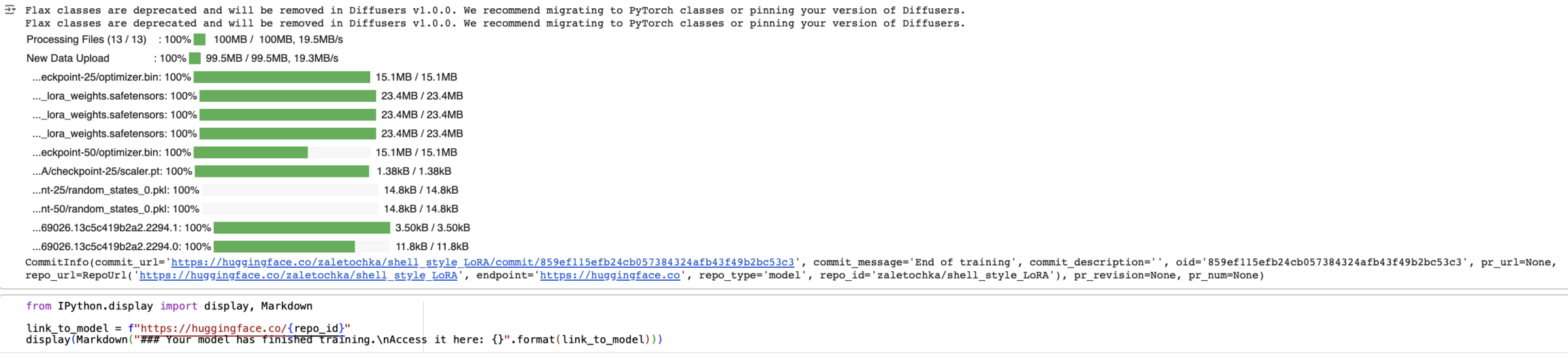 На данном этапе система автоматически формирует текстовые описания для каждого изображения при помощи модели компьютерного зрения BLIP. Алгоритм распознаёт содержимое снимков и генерирует к ним подписи на английском языке, дополняя их стилевым маркером «photo in my style». Затем каждая пара «изображение — описание» сохраняется в файл metadata.jsonl, тем самым формируя основной датасет для дальнейшего обучения нейросети. После завершения обработки модель BLIP выгружается из оперативной памяти, чтобы освободить ресурсы GPU.