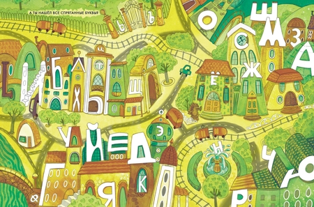 «Travel to Alphabethicus» will be liked by those who began reading magazines from the last page: the one where the fun stories and rebuses are located. It’s a book with fairy tales and game aids that poses challenges for the designer. At the end of each chapter there is a task that needs to be done directly on the page. It was important to arrange the tasks in the most convenient and understandable way possible so that the reader would not have problems with their performance. The artist Natasha Tkachenko tried to make the explanatory pictures of the tasks as interesting as possible. There’s a lot of action in the book, there’s a lot of plot twists, it’s reflected in the design, there’s something happening at every turn, there’s a puzzle hidden on the forzac.