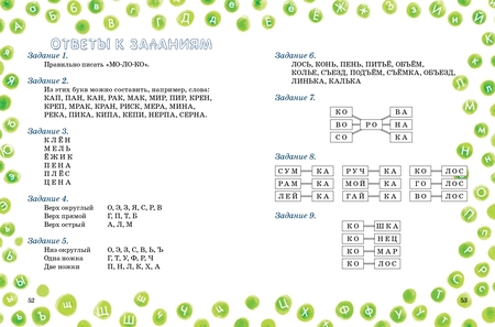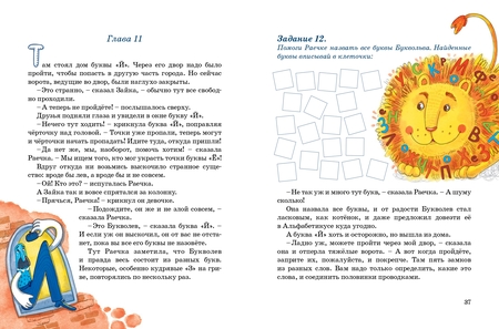 For the main text, the script «Schoolbook» has been used, using the same, favorite, and all the textbooks of the junior classes. For the text of the tasks, the same typeface is drawn and the color selected is used. Thus, the text of the assignment is not confused with the text of the narrative. For the letters in the ribs, the Futura font came, it fits well into the squares and is not lost next to the fairly active drawings.