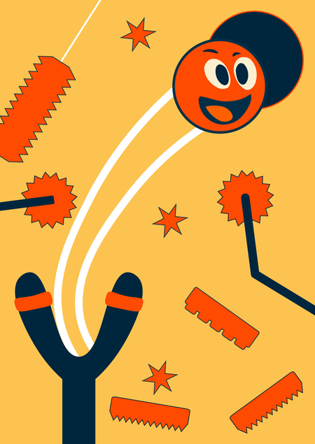 SlingDosh — это минималистичная 2D-аркада, в которой игрок запускает шар из рогатки, рассчитывая траекторию, силу и отскоки, чтобы собирать звёзды и проходить уровни.