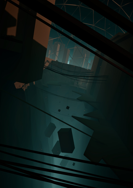 Преобладающая в локации желто-голубая цветовая схема создает атмосферу меланхоличного одиночества.