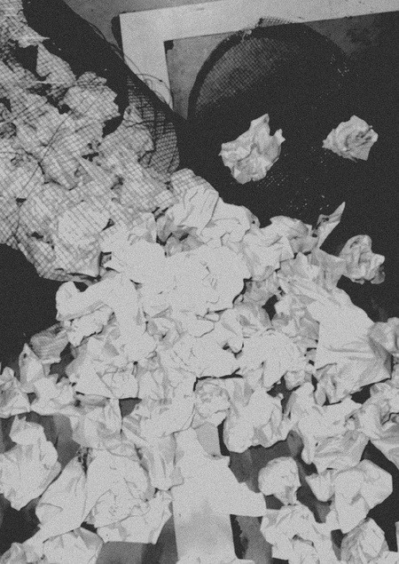 Проект исследует точку застоя в творческом цикле «рождение идеи — критика — отбор — реализация». У нас этот цикл замкнулся на первых трех этапах, превратившись в бесконечную петлю. Ведро с бумагами — это накопитель потенциальных идей, которые так и не получилось осуществить. Наш объект фиксирует акт отказа, а в видео отображен процесс работы с объектом.