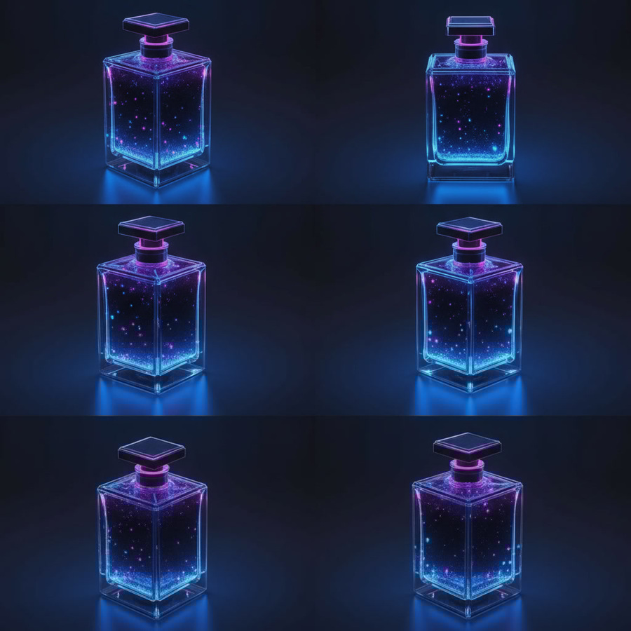 Одним из первых шагов стало генерирование идей, и мне пришло в голову создать линейку одеколонов с неоновой подсветкой, которая могла бы эффективно привлечь внимание аудитории.