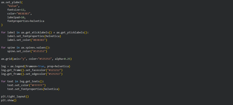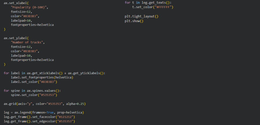 Цветовая палитра проекта вдохновлена фирменным стилем Spotify — фон диаграмм будет черным, акценты будут выполнены в ярко зеленом цвете, а типографика белым.