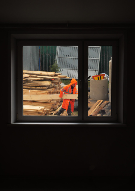 Мне пришла мысль: а что, если это не просто вид на стройку, а настоящий театр, где одновременно разворачиваются несколько историй, и зритель сам решает, за какой из них наблюдать?
