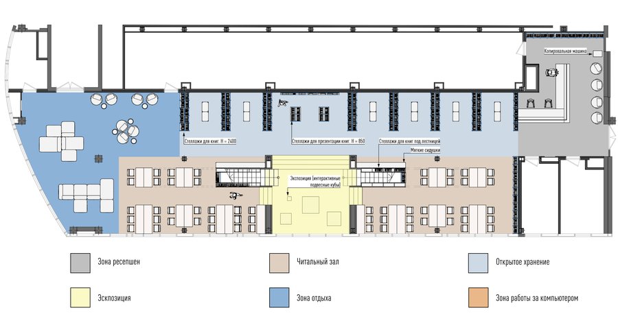 Философия библиотеки строится на уважении к знанию, научной традиции и человеку. Интерьер поддерживает осознанную работу, взаимодействие и развитие, оставаясь актуальным и гибким. Это пространство, где классическая функция библиотеки переосмысляется через дизайн, технологии и культуру, формируя современный образовательный центр.
