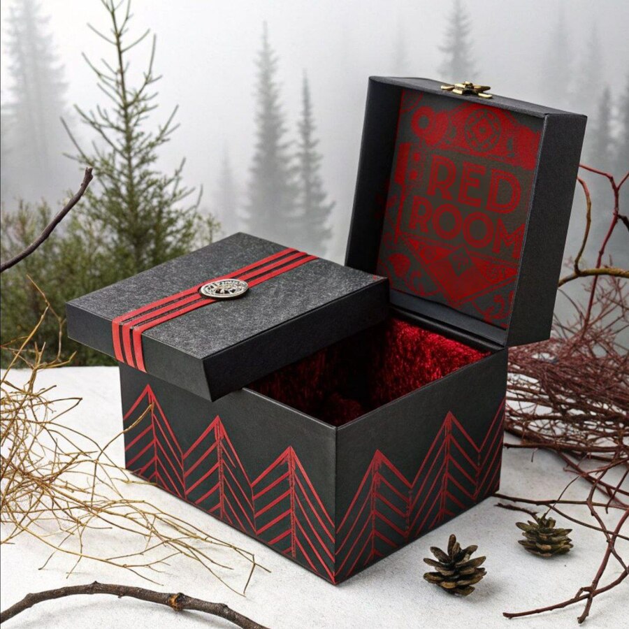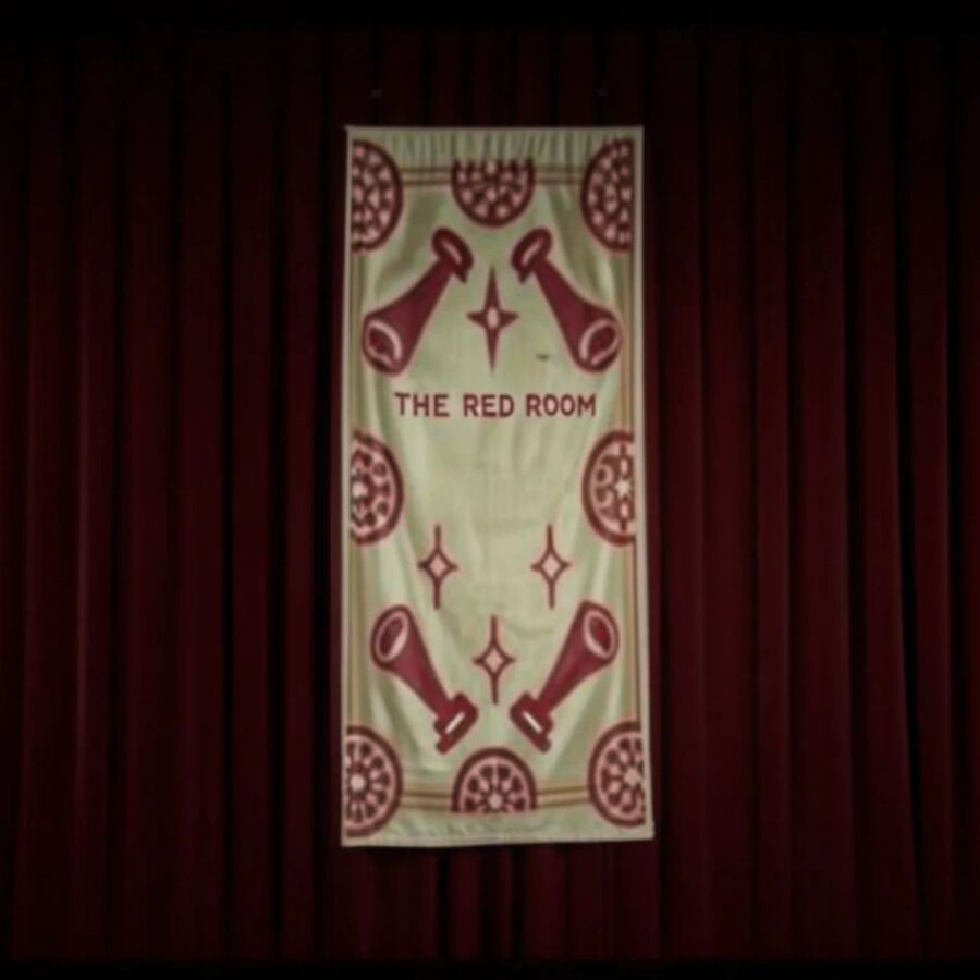 1. The laconic vintage logo for the music listening studio called Red Room, slightly gothic, warm red tones, plain white background, floristic details, music details