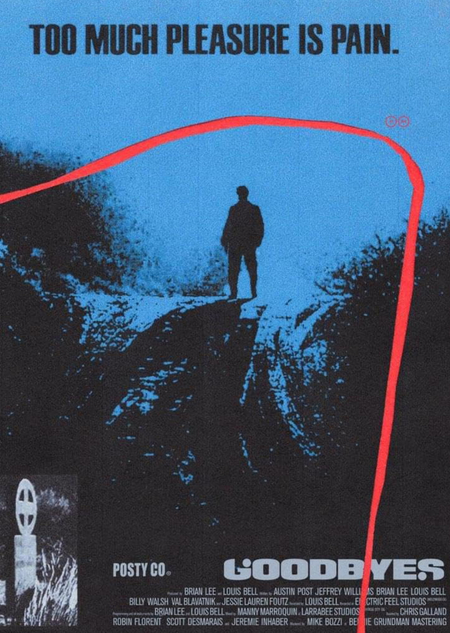 Для сингла Post Malone «Goodbyes» обложка строится на очень простой, но в то же время жесткой композиции. Почти весь квадрат залит плотным синим цветом, наверху маленькая черная фигура в полный рост, а по экрану нитью тянется красная линия. Картинка одновременно напоминает кинопостер и старую, слегка зашумленную печать. В кредитах трека и альбома Hollywood’s Bleeding Антон Рева указан среди дизайнеров, отвечавших за визуальное оформление релиза. Здесь хорошо считывается его привычный ход: фигура героя уменьшена и почти теряется в цветном поле, а главное впечатление создает не лицо, а общее настроение пустого пространства и разрывов.