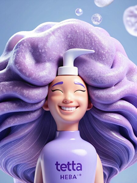 Визуализация продукции создана при помощи промптов, написанных Chat GPT и сгенерирована в Recraft.ai по запросу «напиши промпт для recraft.ai чтобы создать линейку уходовых средств компании Tetta в фиолетовых отнках с белым логотипом из листьев».