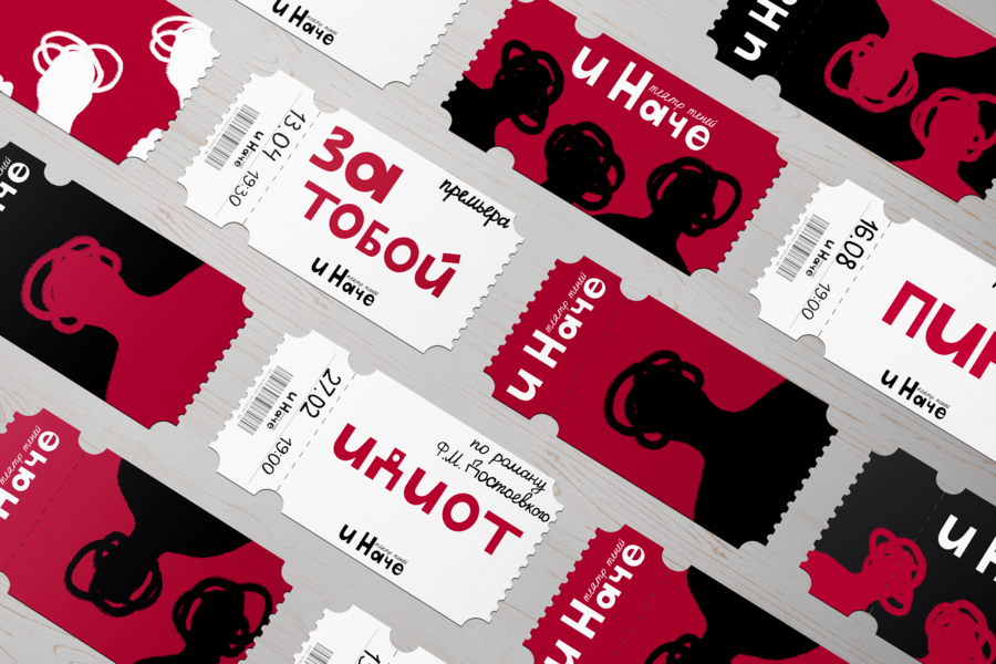 A ticket for the Umbra shadow theater. A somber design with monochrome photographs of people and red accents.