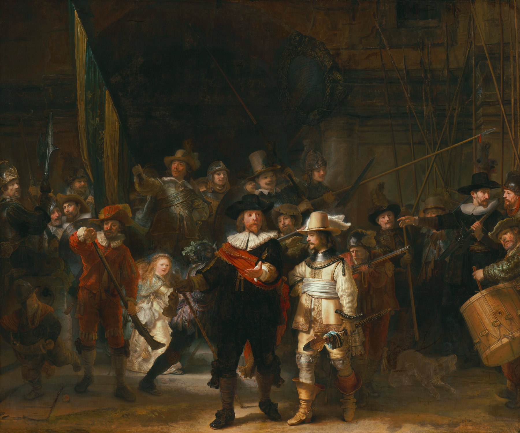 «Ночной дозор» Рембрандта ван Рейна (полное название — «Выступление стрелковой роты капитана Франса Баннинка Кока и лейтенанта Виллема ван Рёйтенбюрга») — вершина Золотого века нидерландской живописи. Это монументальное полотно было написано в 1642 году по заказу амстердамской стрелковой гильдии. Автор создал новаторское произведение, проявив бунтарский дух и бросив вызов правилам традиционного парадного портрета. Нарушая канон, он отверг формальность, статику и идеализацию персонажей, чтобы наполнить полотно непосредственностью, движением и тайными знаками. Уникальное художественное видение мастера шло наперекор ожиданиям заказчиков, что привело к их раздражению и разочарованию. При жизни художника картина не была оценена по достоинству, однако сегодня она признана непререкаемым символом национальной гордости Нидерландов.