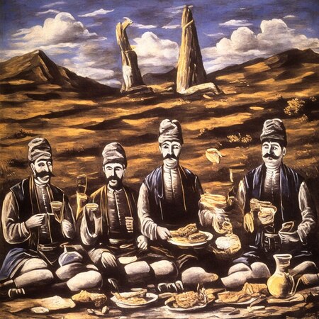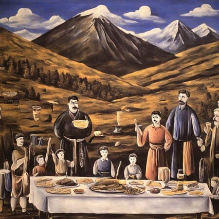 При создании генераций на тему грузинского быта в стиле Нико Пиросмани я обращала особое внимание на сохранение черт примитивизма, цветовую палитру и композиционные решения художника.