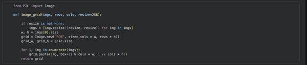 Далее данные подготавливаются для изолированной среды. Мы создаем функцию для генерации сетки изображений (коллажа), которая размещает несколько картинок в одну строку.