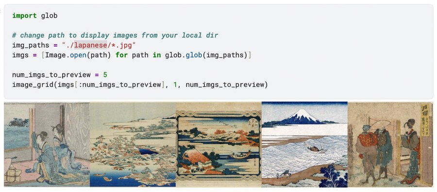 1. Я нашла в открытом доступе картинки Кацусика Хокусай, собрала датасет из 35 штук и загрузила его в среду Kaggle. Я старалась выбирать работы разных жанров и техник.