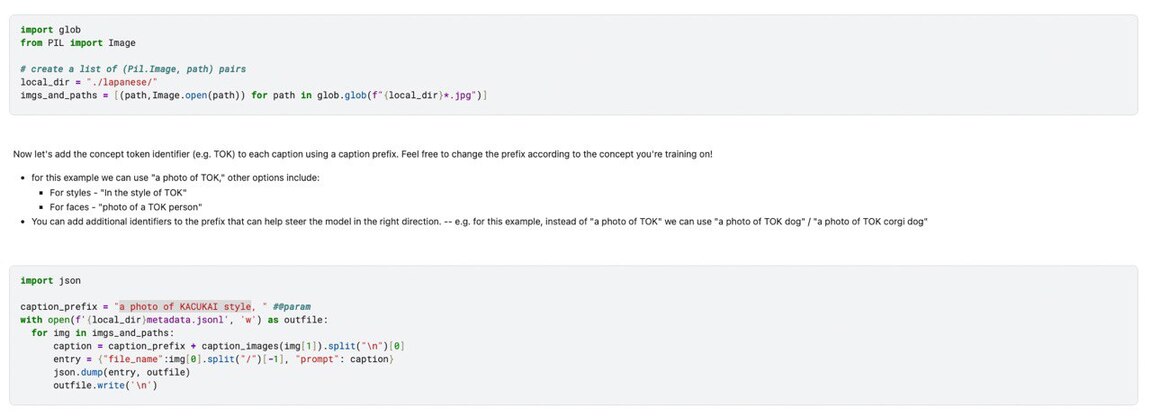3. С помощью исходного кода создала промпты-описания к картинкам в датасете.