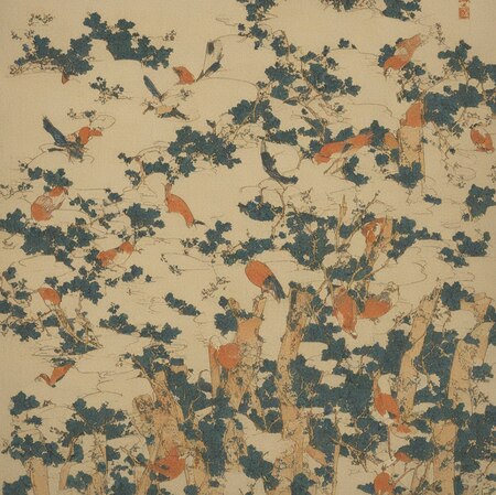 Сравнивая изображения автора и нейросети, я обращаю внимание, с помощью каких деталей ИИ передает эстетику и стиль художника. Композиция с большим количеством «воздуха», маленькие иероглифические подписи в уголках картинок, приглушенные цвета.