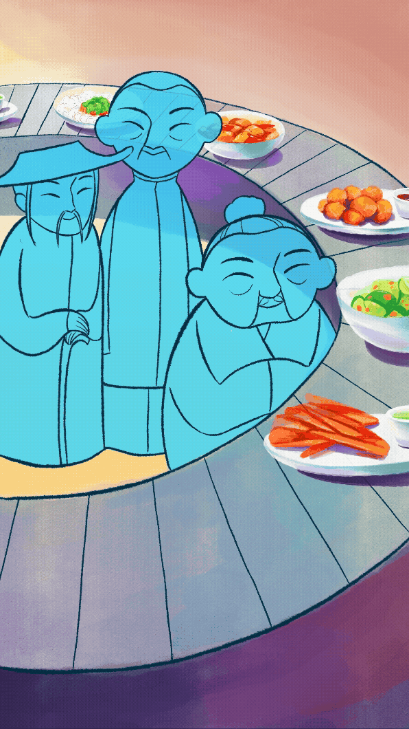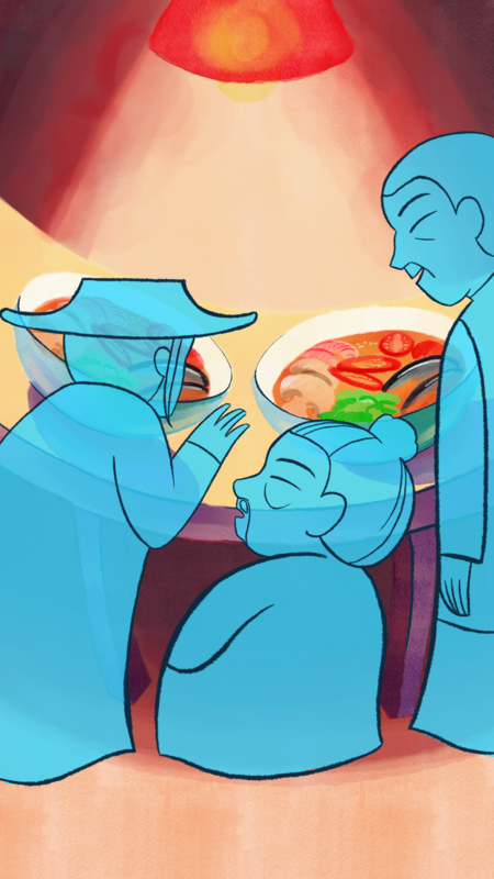 Первый вертикальный ролик рассказывает историю про призраков, ищущих любимое блюдо.
