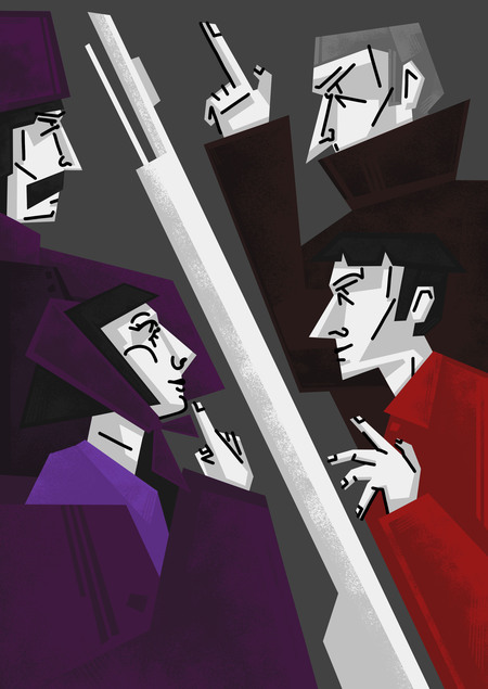В игре две сопернические команды — два красногвардейца и буржуй и с блудницей.