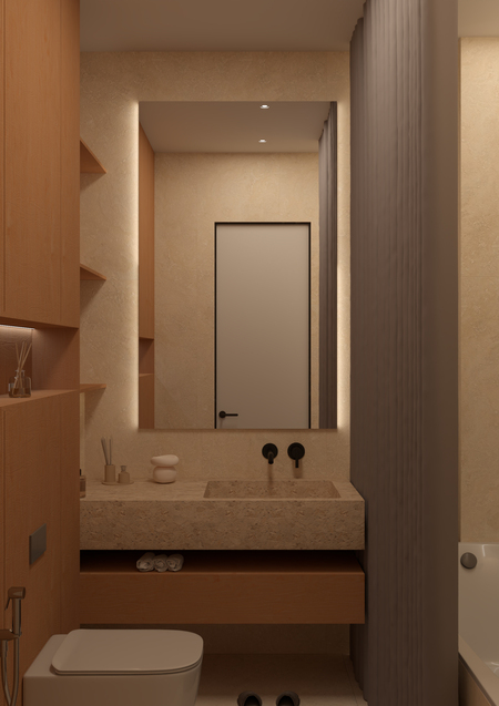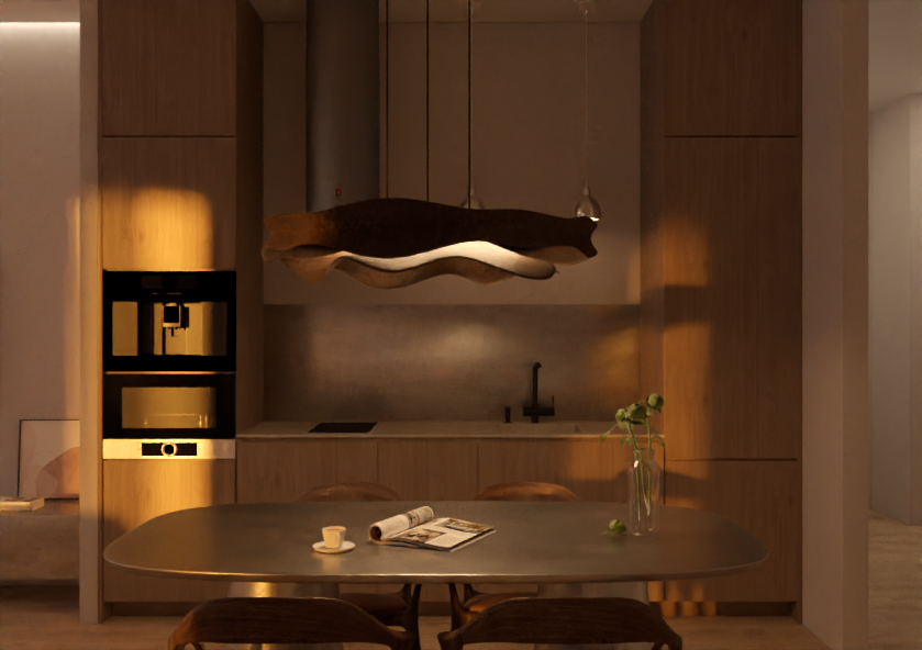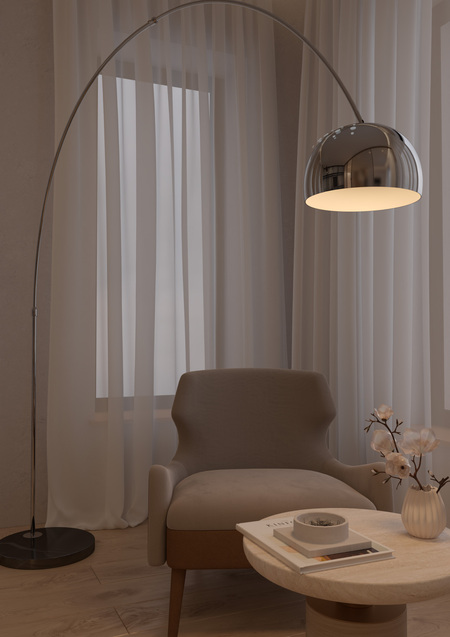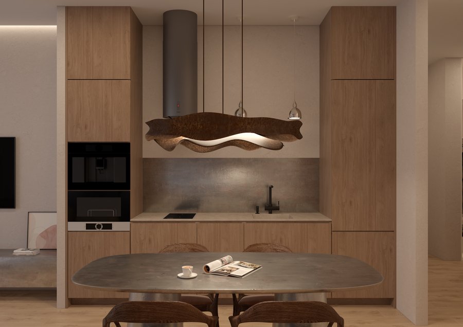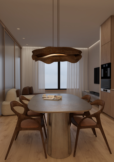 Этот интерьер — хореография света и воздуха, где строгость металла смягчается теплом дерева, превращая широту объединённого пространства в тихую гавань, полную умиротворения и абсолютной приватности.