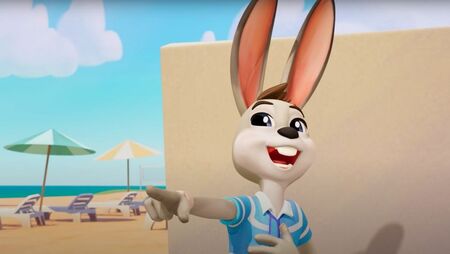 Дизайн Зайца отражает типаж гармоничного положительного героя советской анимационной традиции, визуально уравновешивающего энергетику дуэта.