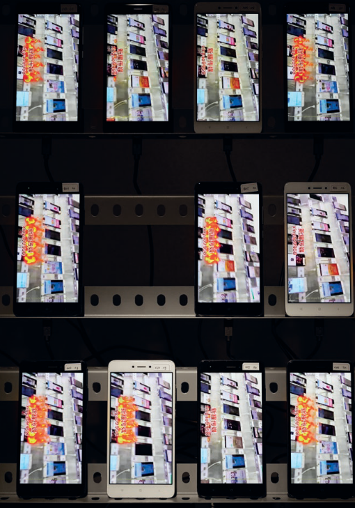 Ben Grosser, software for less, 2021. Installation view, arebyte Gallery, London. Image: Max Colson.